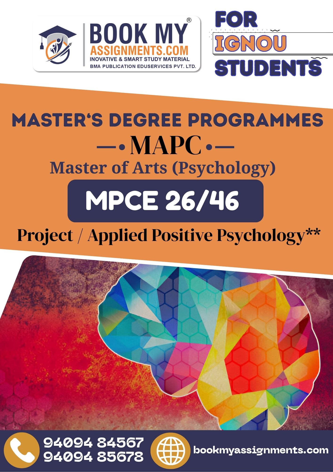 This soft copy project for IGNOU MPCE 16/46, prepared for the Master of Arts (Psychology) MAPC programme, presents a research-driven, professionally articulated, and academically structured study in Applied Positive Psychology. The content explores psychological strengths, wellbeing models, resilience-building techniques, positive emotion regulation, and other core themes central to modern positive psychology applications.